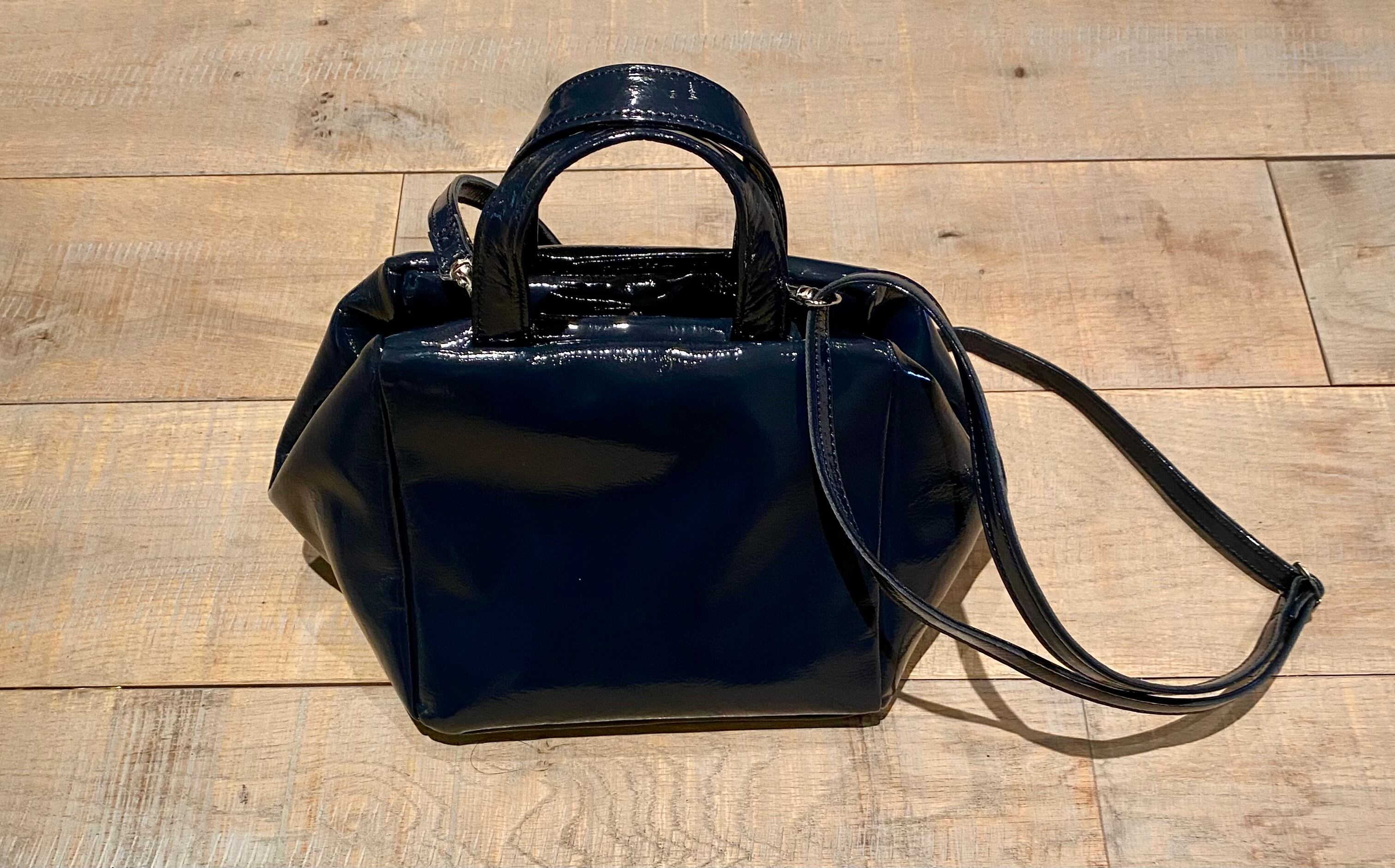 長年2サイズで展開していたバッグにスモールサイズの新型が登場!!取り外し可能で、長さも調節可能のショルダー付きなので、斜めがけも可能♪小さいですが、底のマチはしっかりあるので荷物もじゅうぶん入ります。内ポケットは、ファスナー有り1つとファスナー無し1つの2つあるので使い勝手も◎