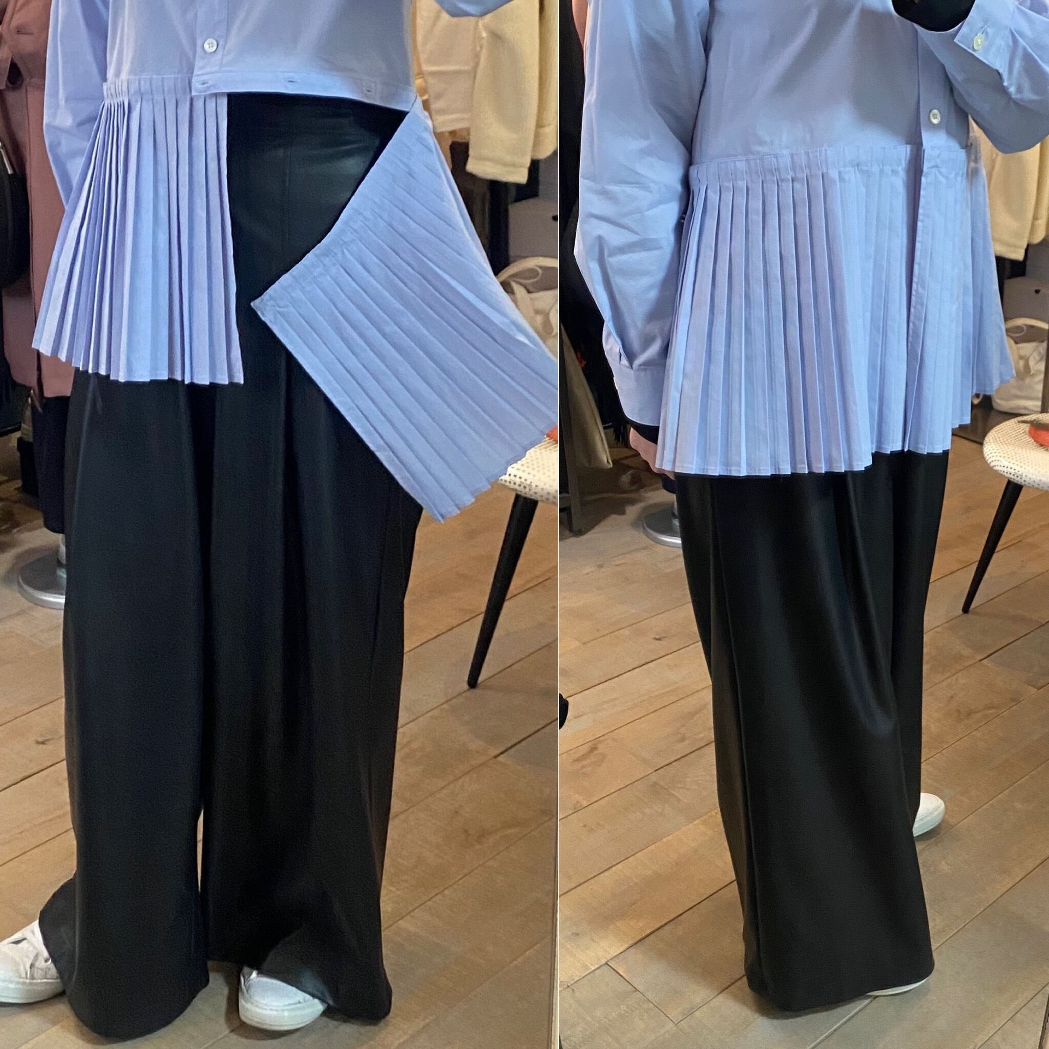 2wayで楽しんで頂けるブラウス。プリーツ部分が取り外し可能で、トレンドのクロップド丈のブラウスにもなります♪レイヤードコーディネートにもお使い頂きやすい、着回しに大活躍のブラウス。プリーツ部分をつけた状態で、クロップド丈のジャケットやベスト、その他トップスとのレイヤードもオススメ。ロングシーズン着回せるのも嬉しいところ♪