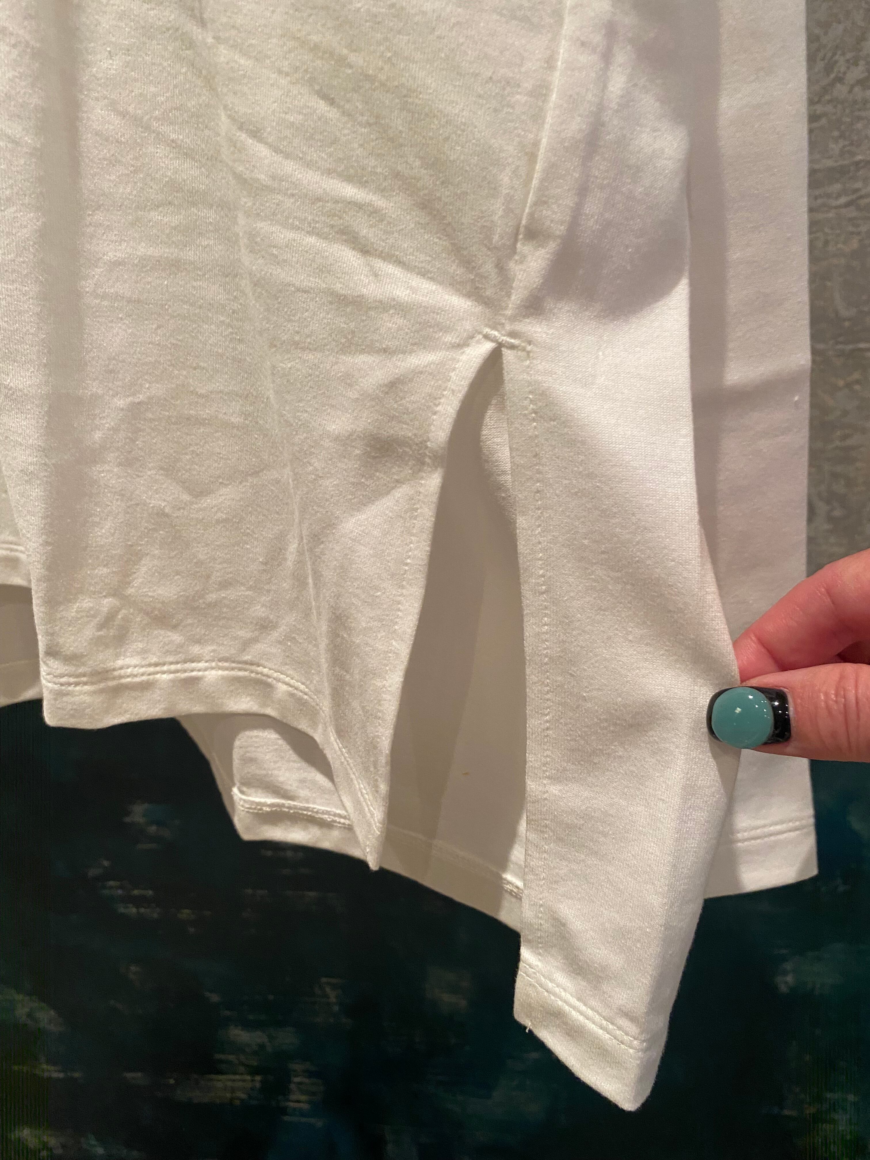 オールシーズン着用可能なコットンジャージー。着心地の良さが持ち味の新素材です。肌馴染みの良い優しいタッチで程よく肉感があり透けにくいです。ゆったりめのサイズ感、シルエットでユニセックスてんかいになります。"euphoric"オリジナル刺繍とワイドスリーブがポイントになっています。