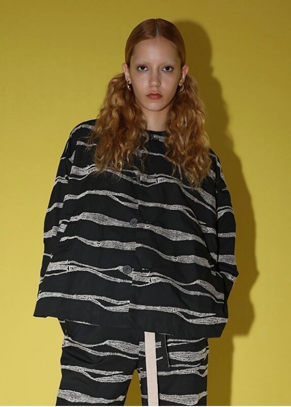 【kamishima chinami yellow】ギザギザゼブラbig flare silhouette blouson