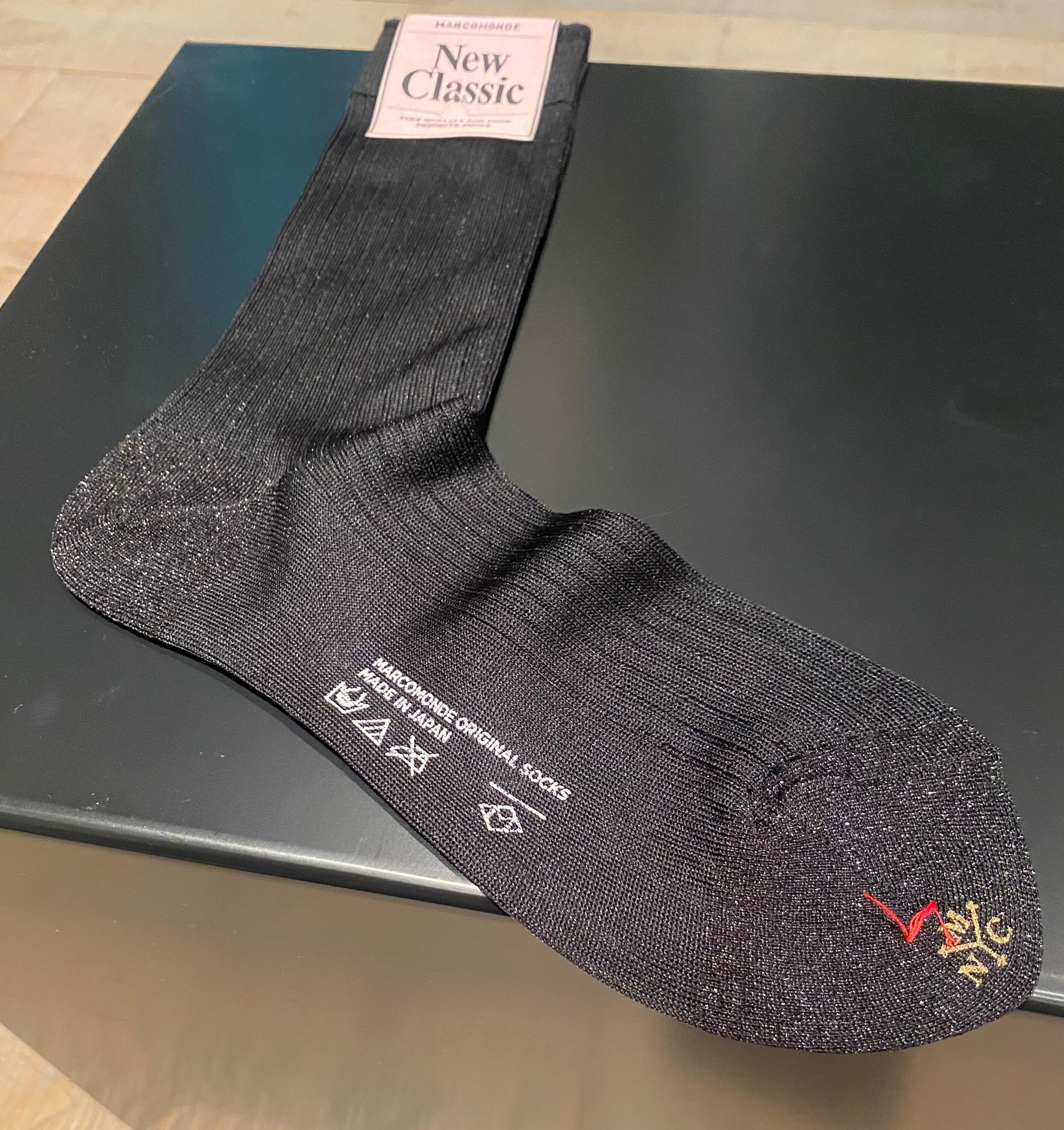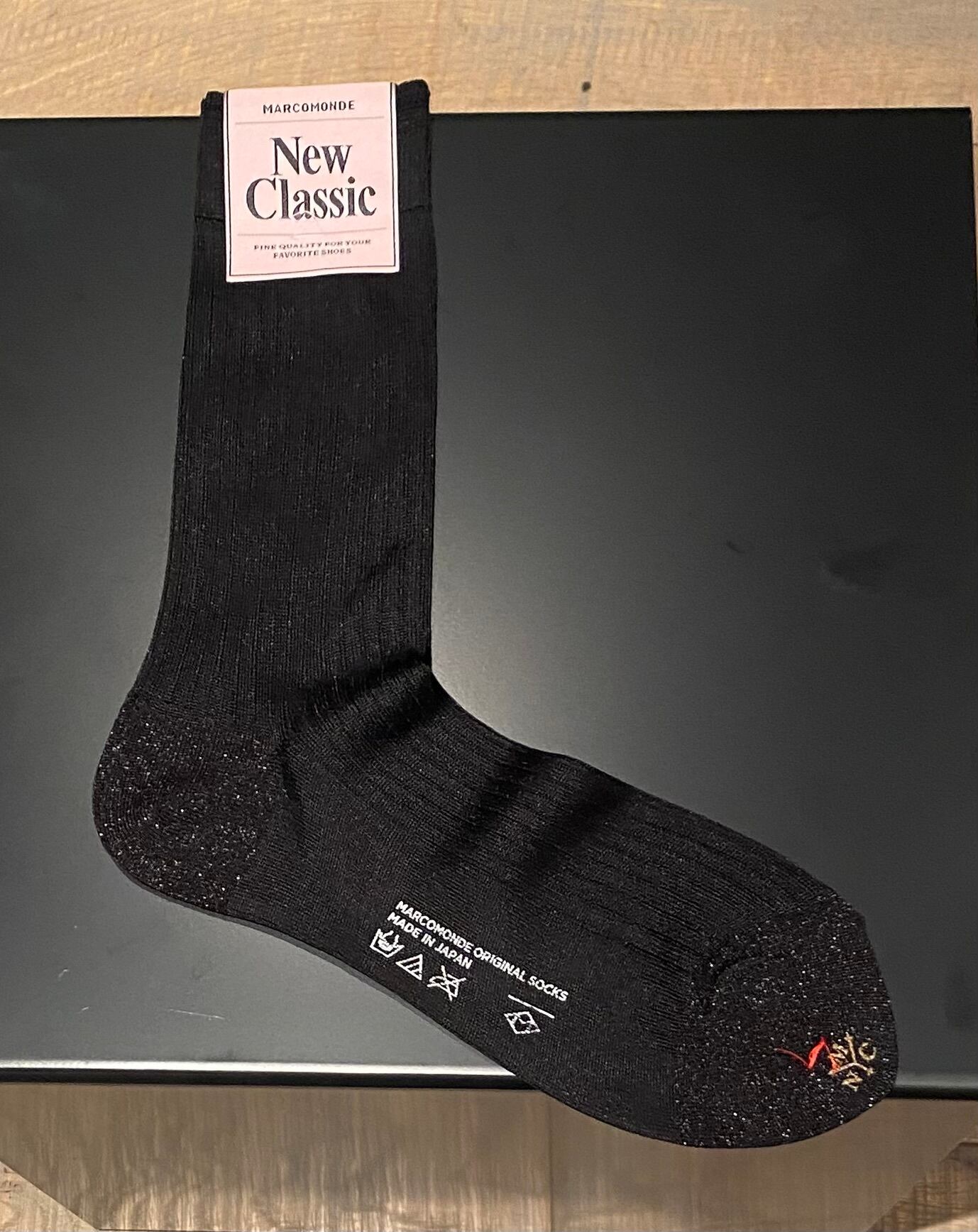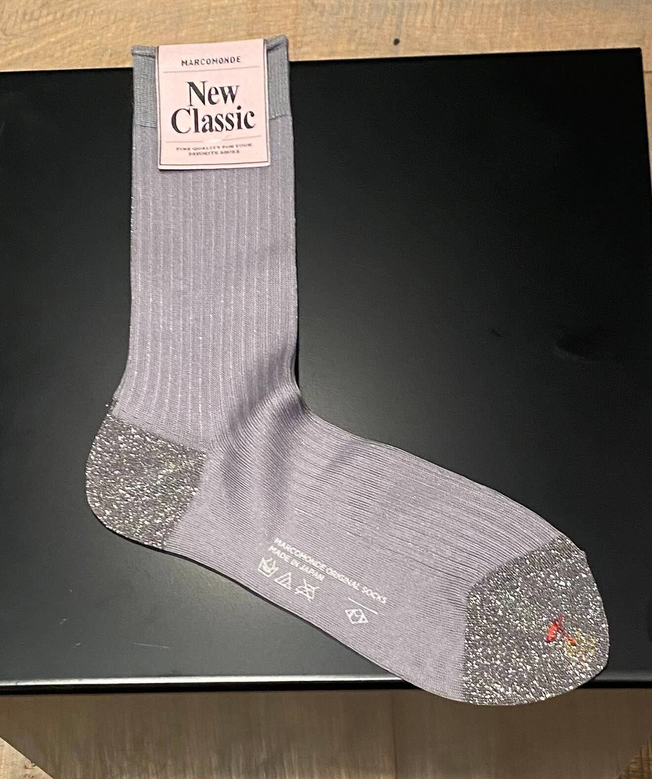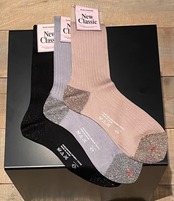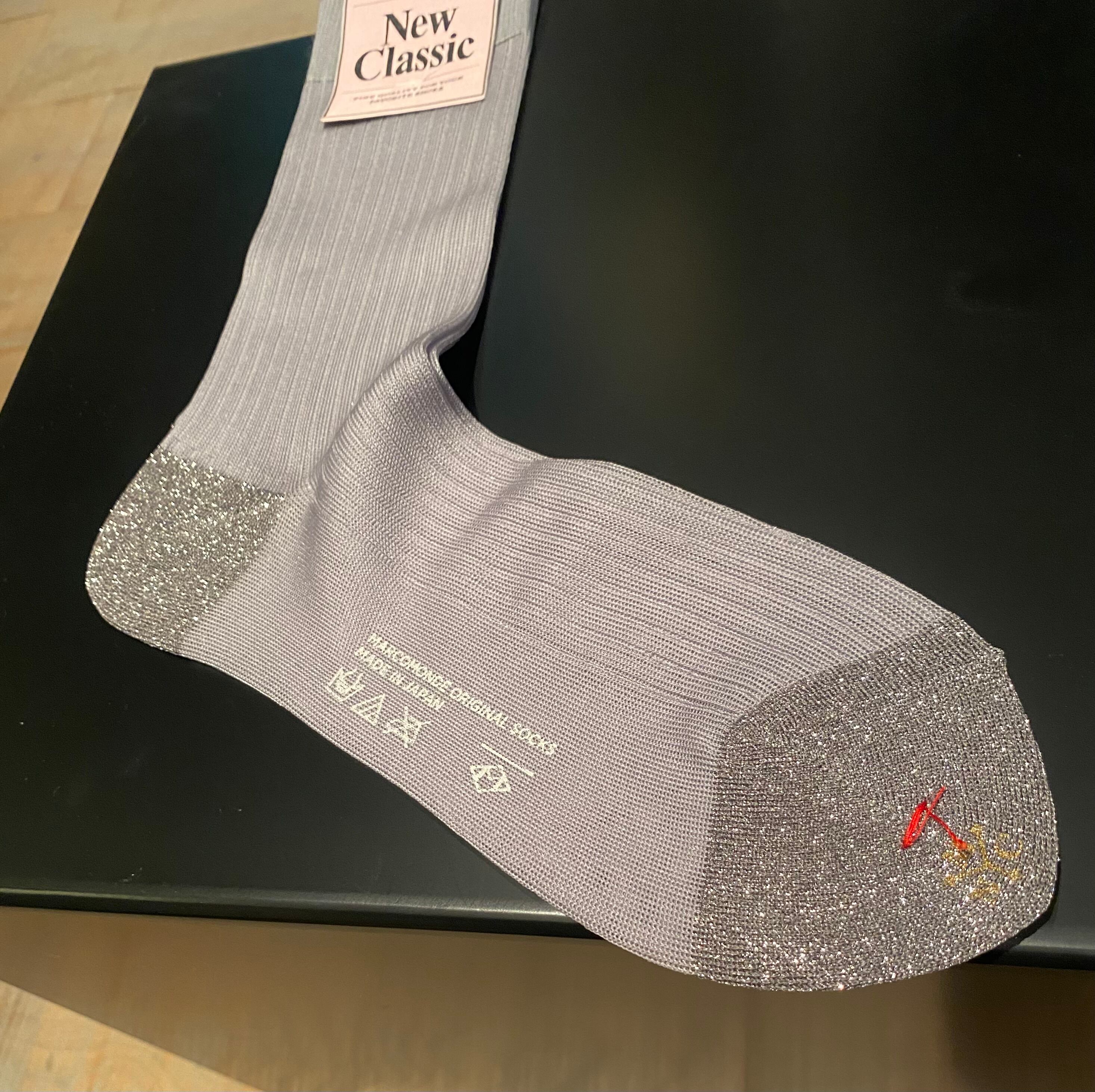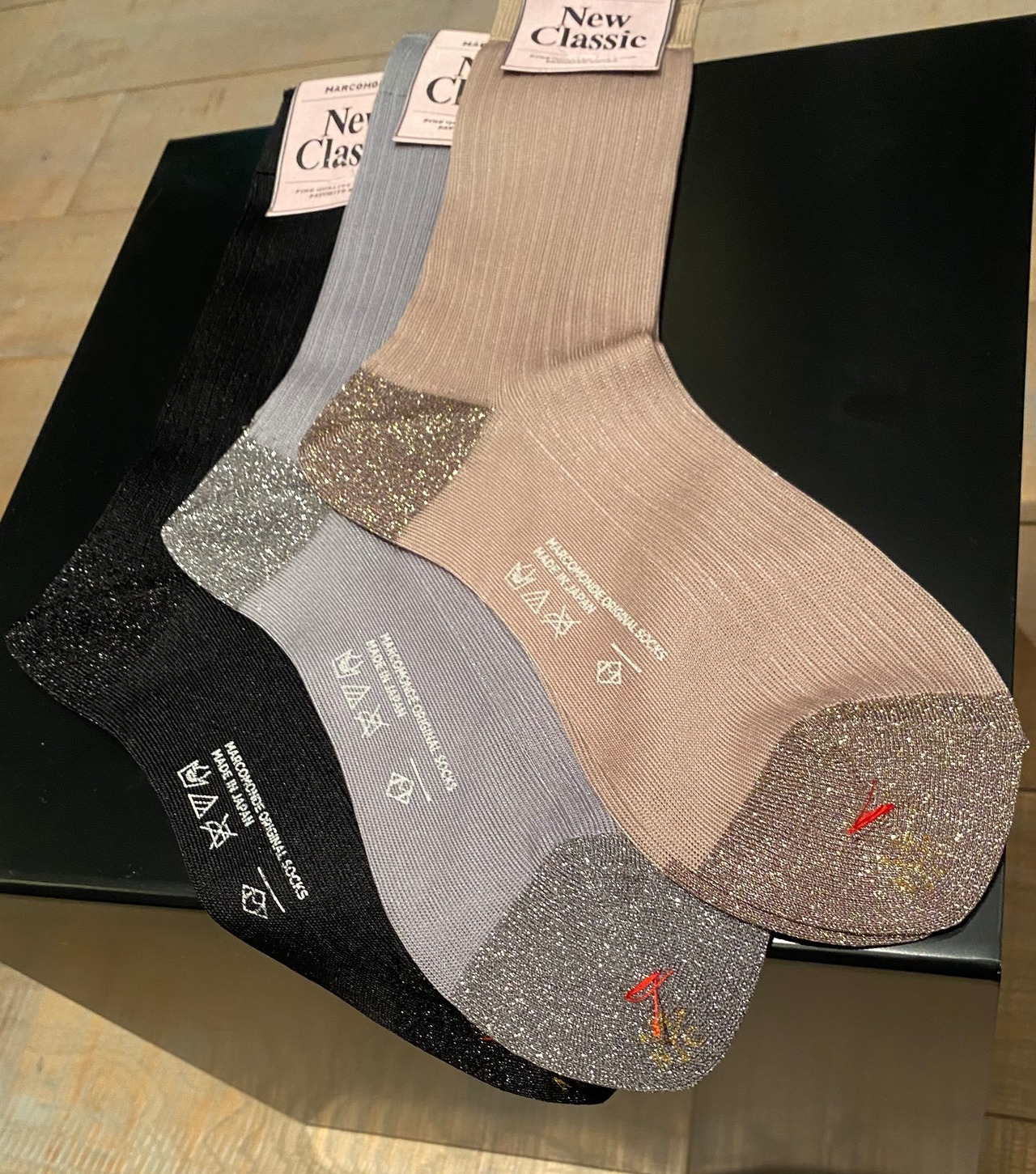 シアー感のあるベースにつま先と踵がラメの配色になっているワイドリブソックスは、サンダルやミュールタイプのシューズとと合わせるとラメが可愛くポイントに。
