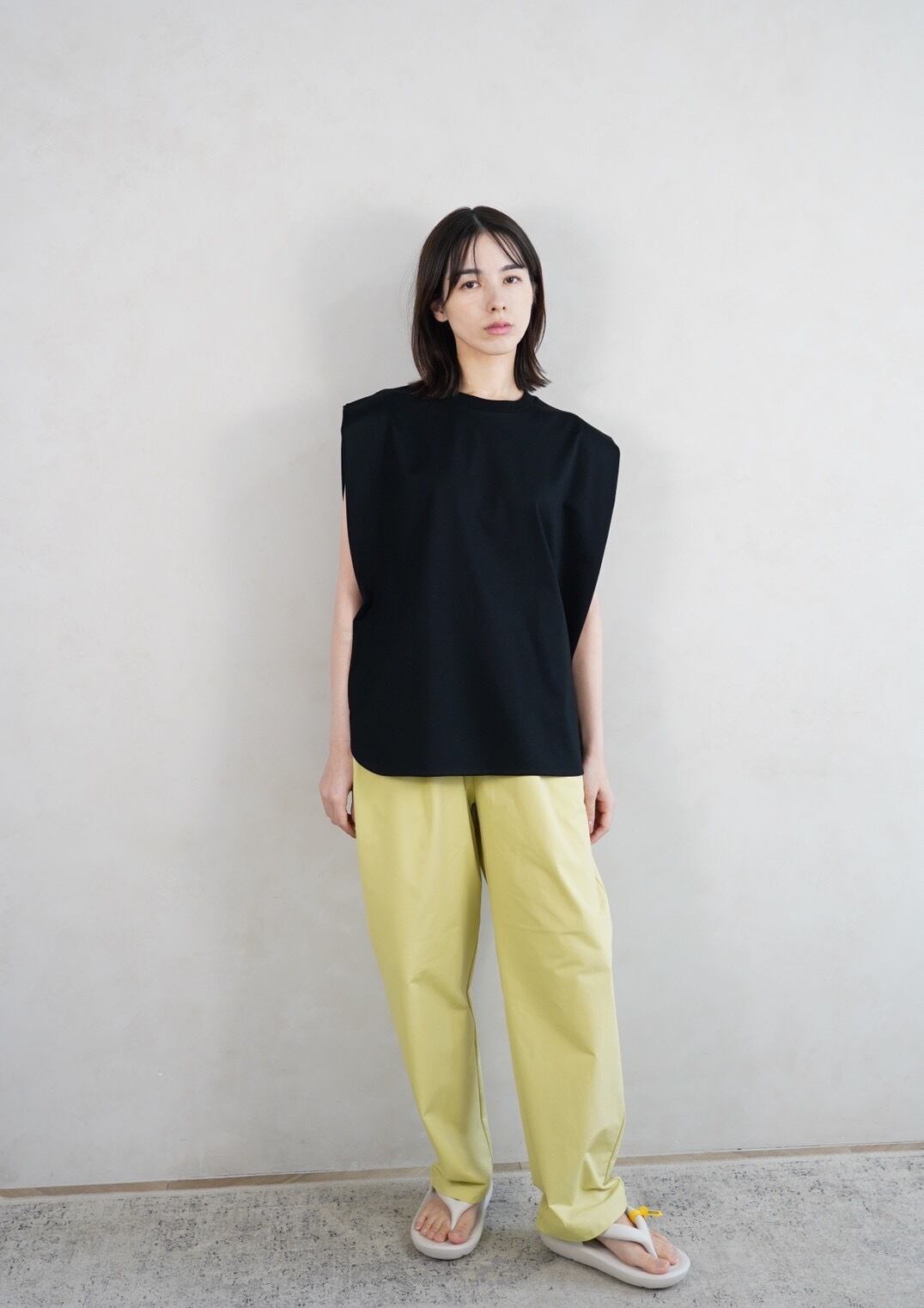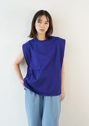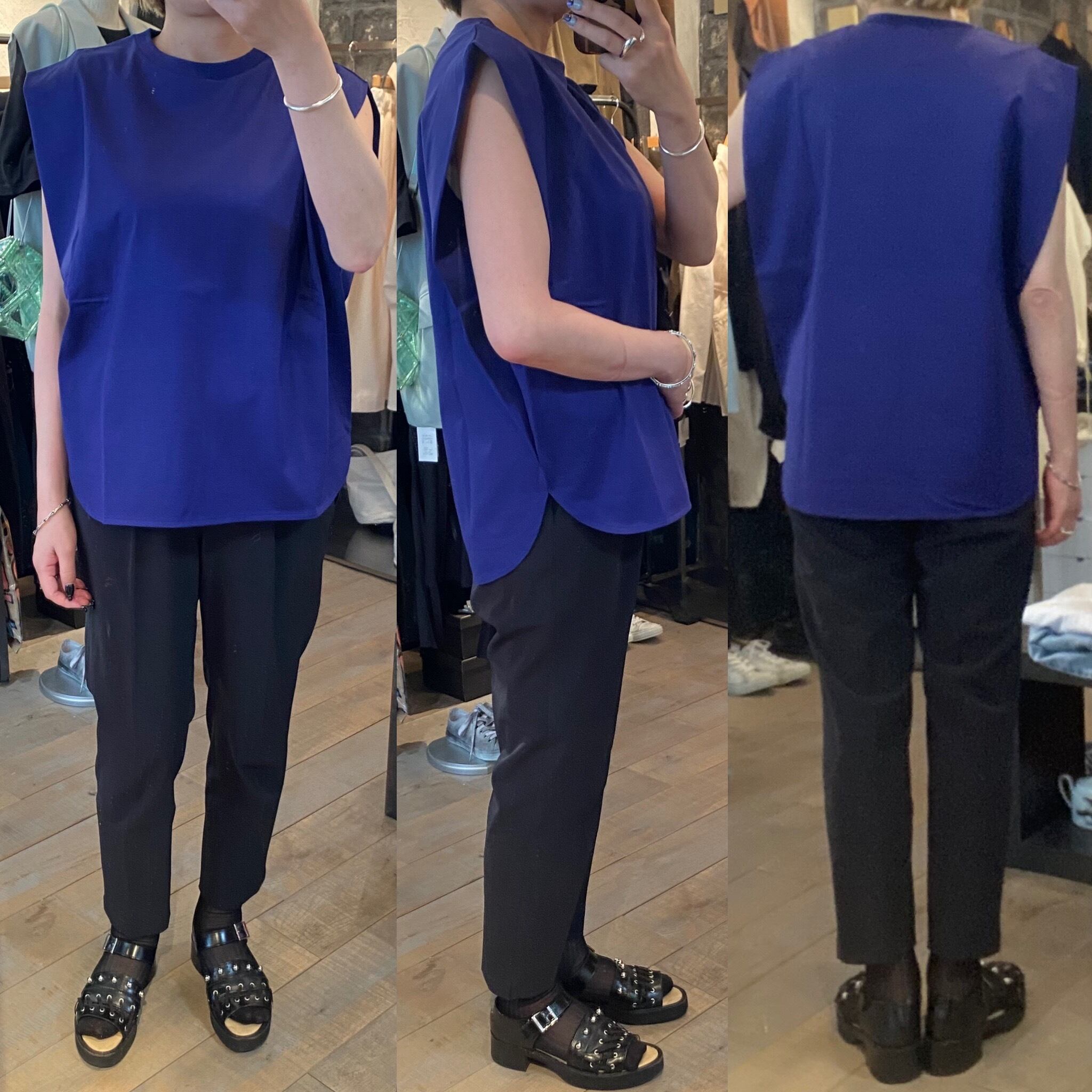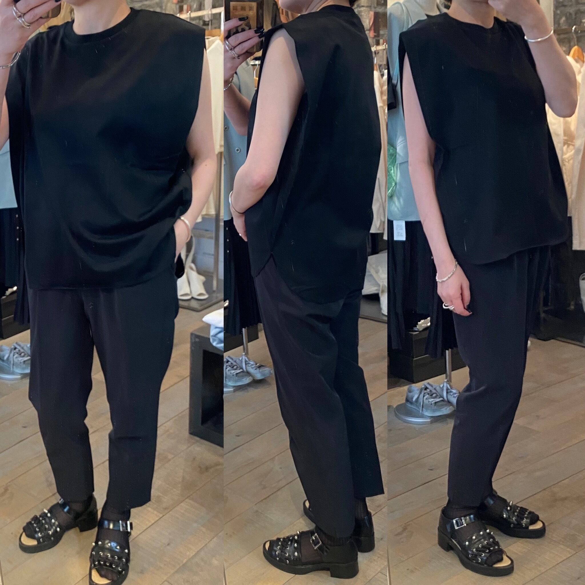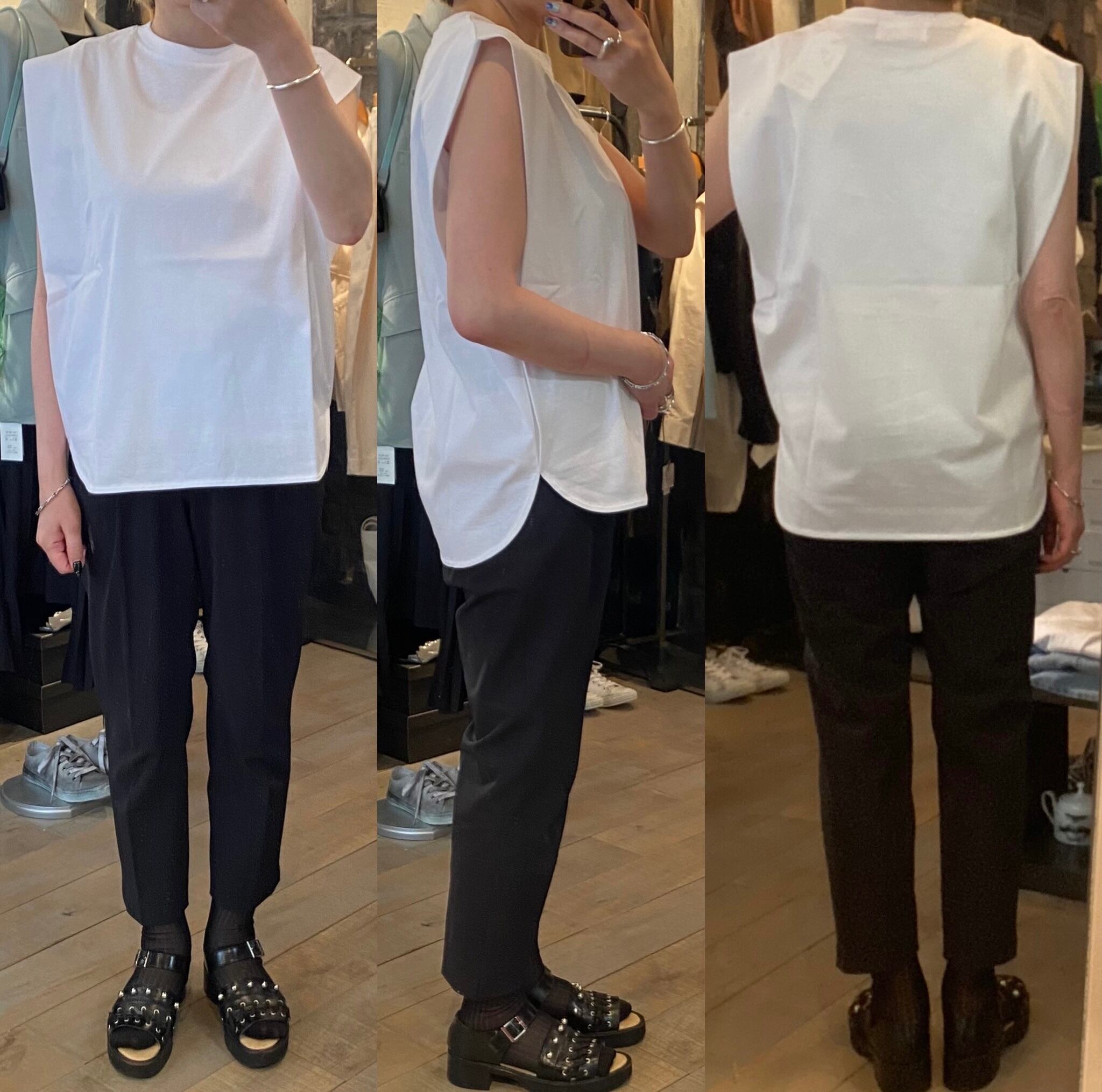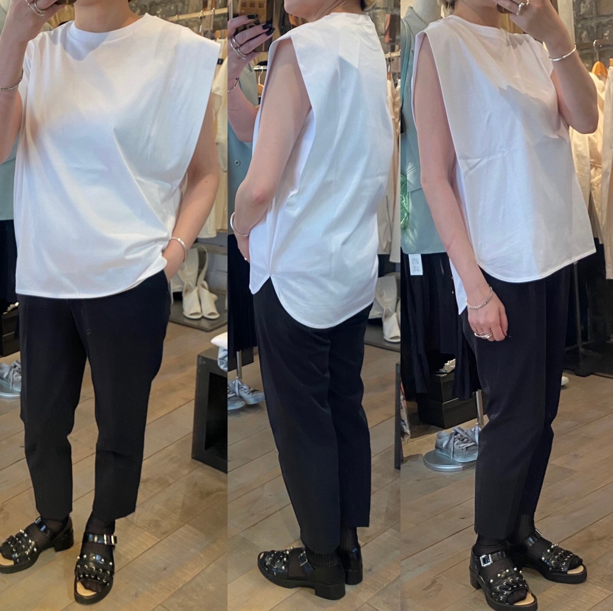 デザインポイントでありながら、二の腕ラインをカバーしてくれる優秀なノースリーブトップス。裾の緩やかなラウンドヘムは、ボトムとのバランスがとりやすくレイヤードもしやすいです♪これからの季節ヘビロテアイテムです!