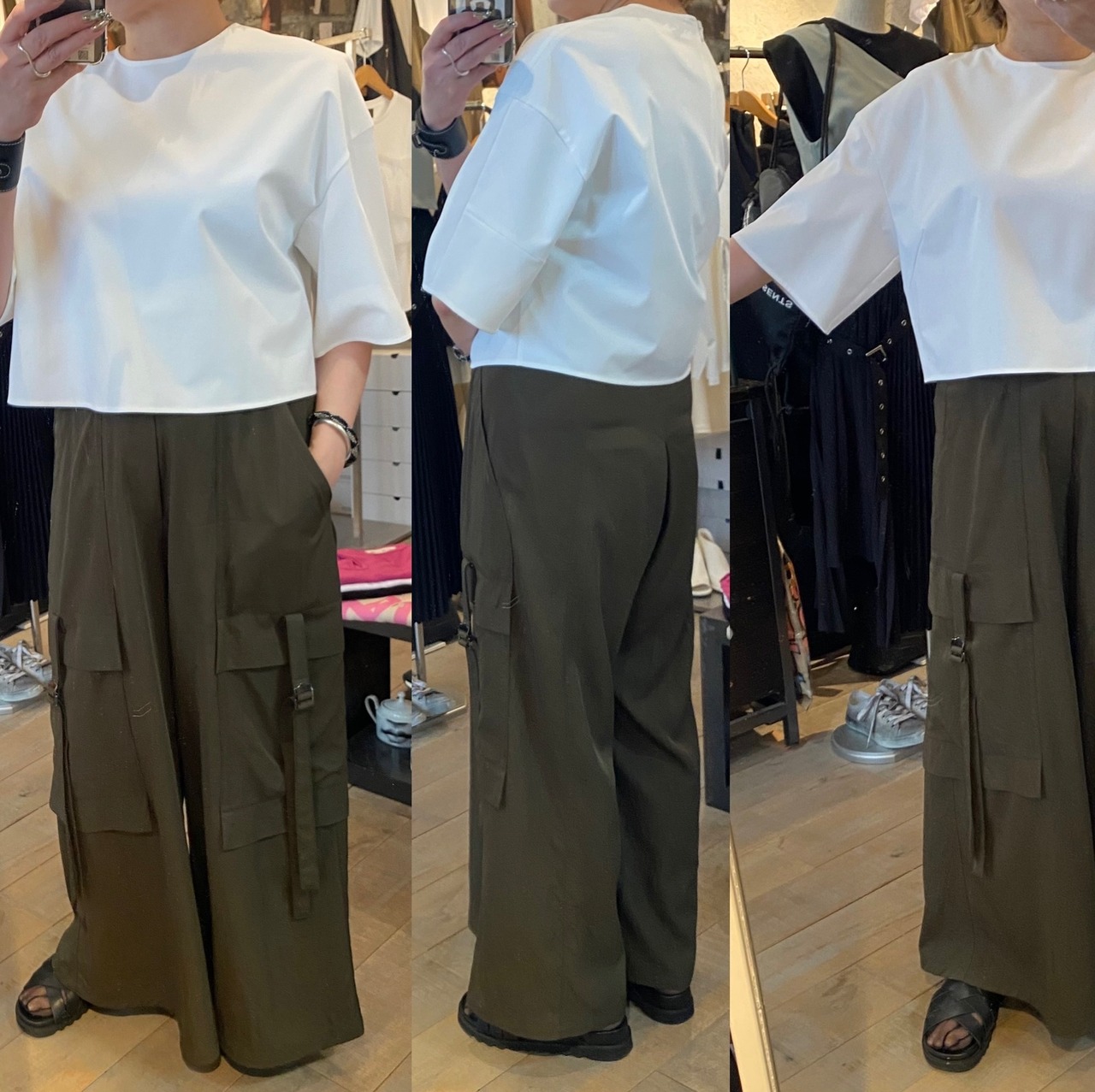 ポリエステルにストレッチの効いた素材で、ロングシーズン着用可能。シャリッとしたドライタッチの着心地。キレイめなスタイリングでもカジュアルにも対応できます♪