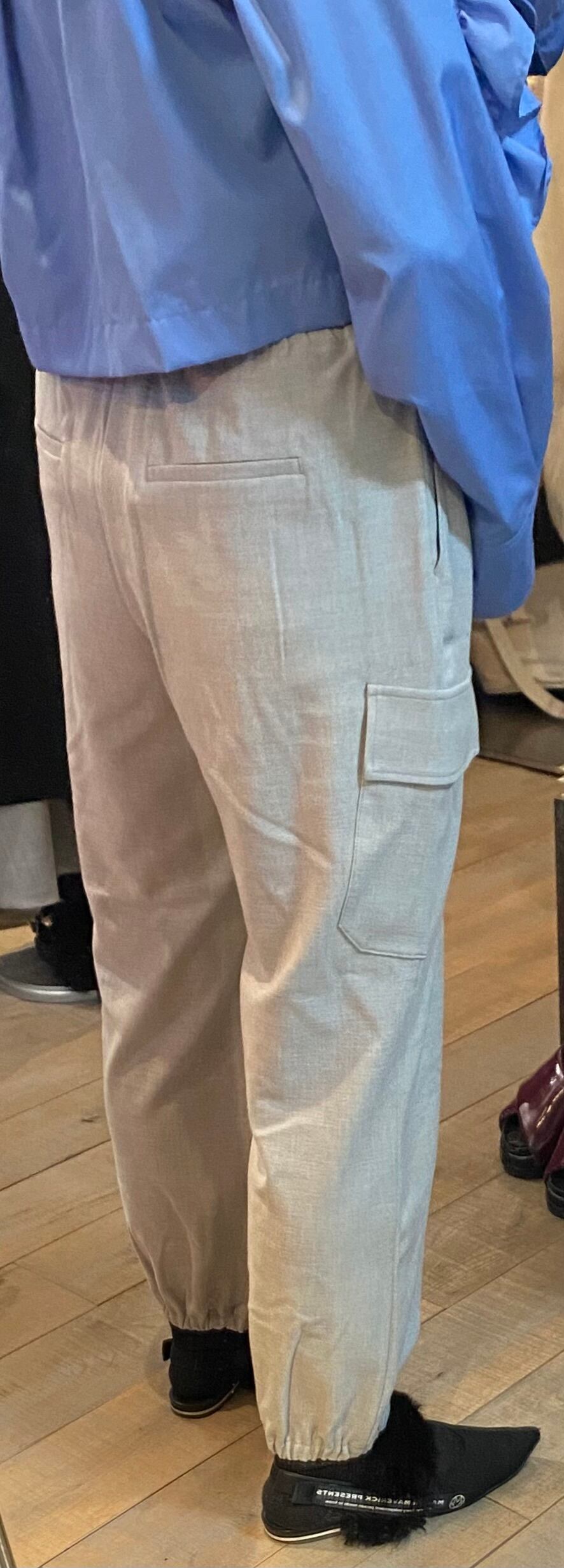 ウエストがゴムで紐もあるのでフリーサイズですがあらゆる体型のお客様に対応できるパンツ。スッキリとしたシルエットで履き心地も抜群。裏起毛で軽くて暖かく、スウェット素材の裏起毛ではなくキレイめにも着れるのも嬉しいところ。単品でも同素材のパンツとセットアップでもオススメ。