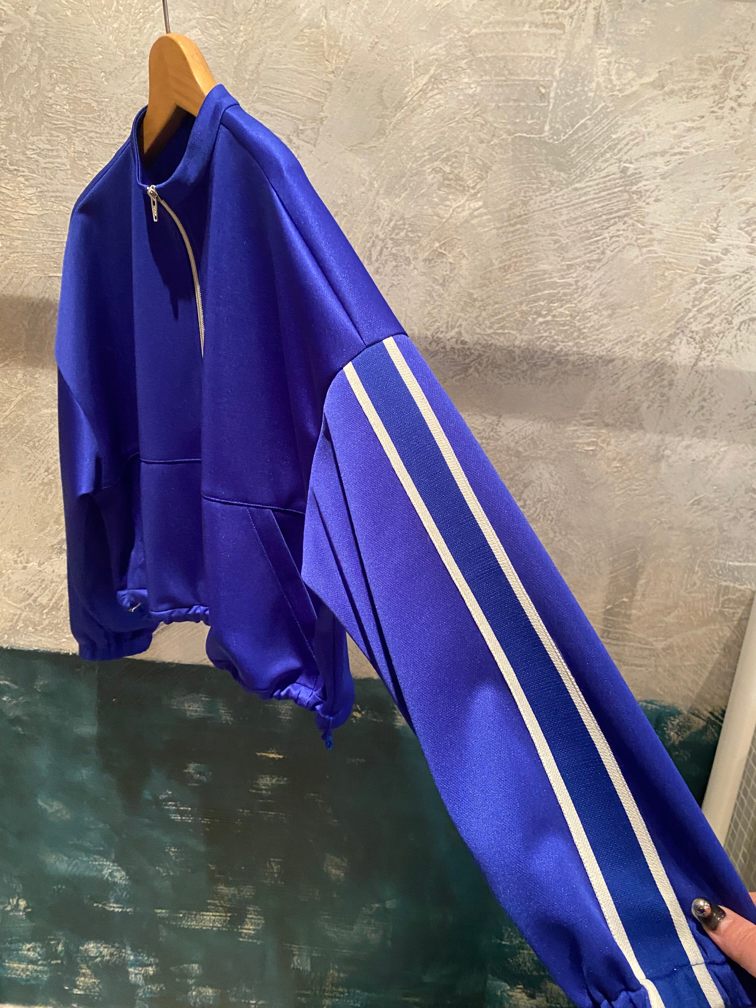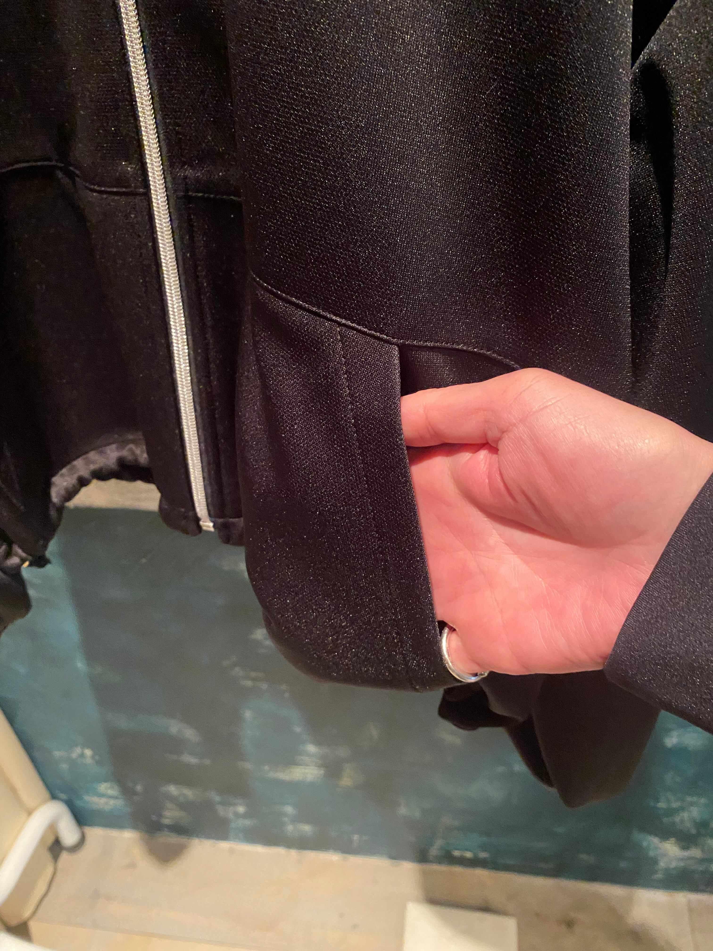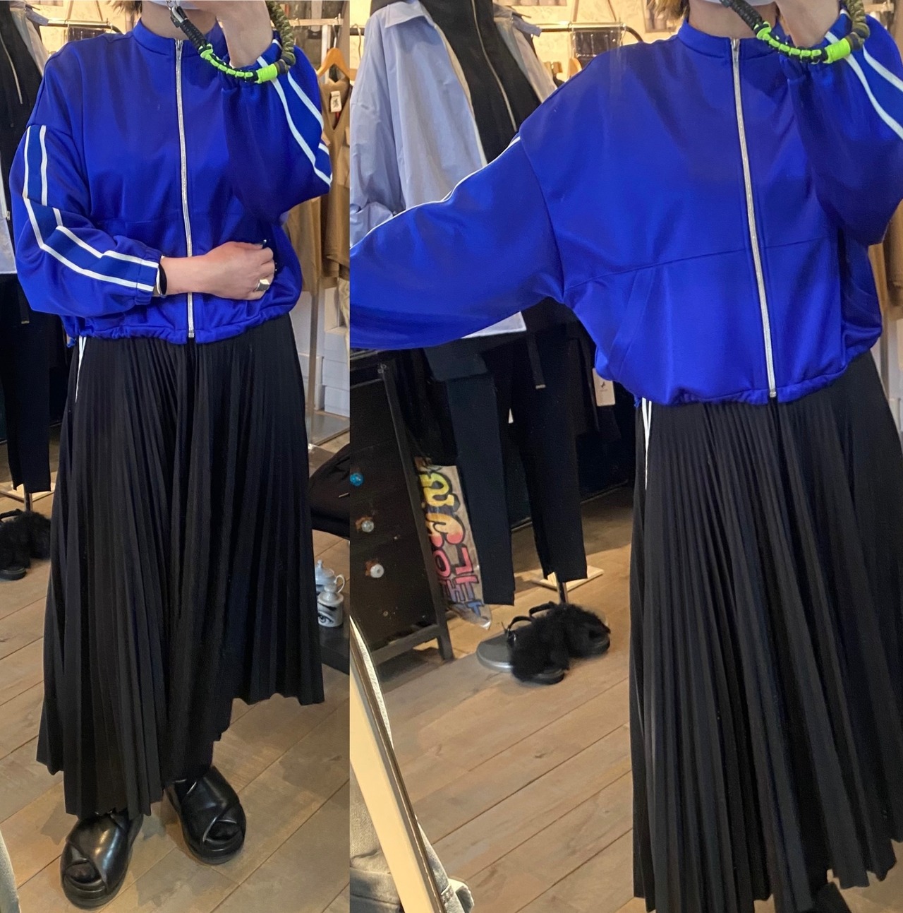 お袖のラインのデザインがポイントのジップアップジャケット。裾のドローコードでシルエットの変化を楽しんで頂けます。両サイドポケット有り。スポーティーなアイテムの中にもモードさもあり、あらゆるものとレイヤードして頂けます♪真夏以外ロングシーズン着回せます。