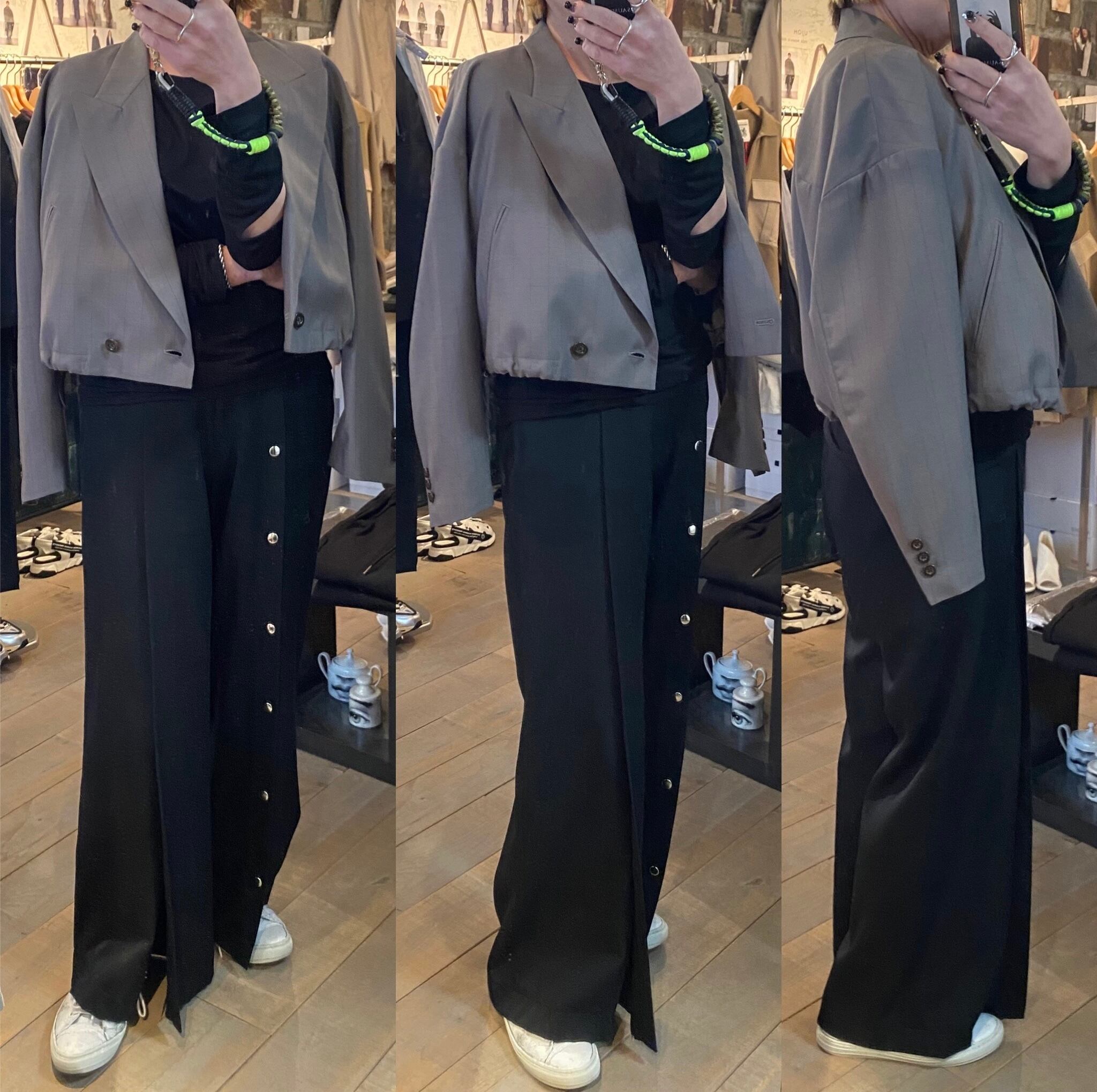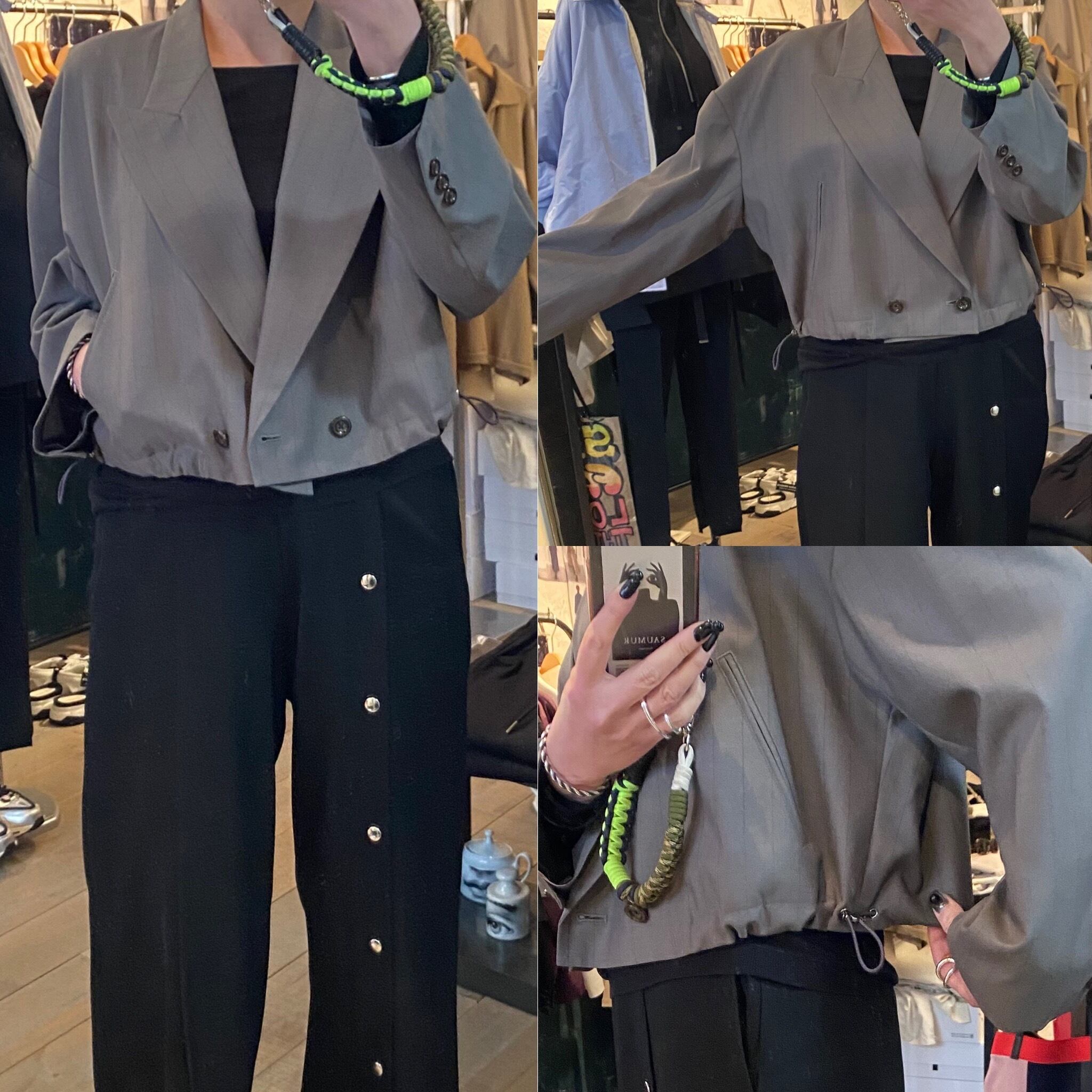 クラシカルな佇まいのピークトラベルジャケット。ルーズフィットなオーバーサイズ感でありながらドロップショルダーやウエストをドローコードでギャザーを寄せたシルエットが華奢な女性らしい印象のジャケットに仕上がっています。素材はSUPER 100 ウールを使用したピンストライプサマーウールです。通気性や軽さがあり、滑らかな質感の上品な素材です。ドライタッチでウール特有の吸湿性、防湿性もあるので真夏でも快適に着用することができます。